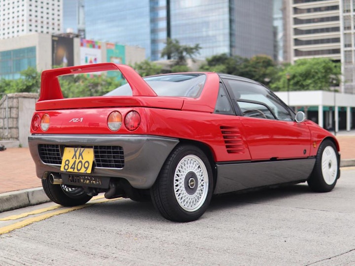 The car we have here today is called the Mazda Autozam AZ-1. The concept of the car actually originated from Suzuki, who conceived the idea but due to capacity issues, Mazda took over and realized the project instead. The project leader at Mazda was also responsible for the hugely successful MX-5 project, so the AZ-1 was bound to be good right at the get go. In 1992, Mazda officially released the car under the Autozam brand, which is the sub-brand of Mazda. Production lasted two years until 1994, and only 4,300 units were built. The low production numbers was partly due to Japan hitting an economic recession at the time, and the AZ-1 was also more expensive than other Kei cars at the time, such as the Honda Beat and Suzuki Cappuccino, which proved to be unpopoular. This means that today, the AZ-1 is considered a rare car and values have been rising, although parts can be hard to come by.
