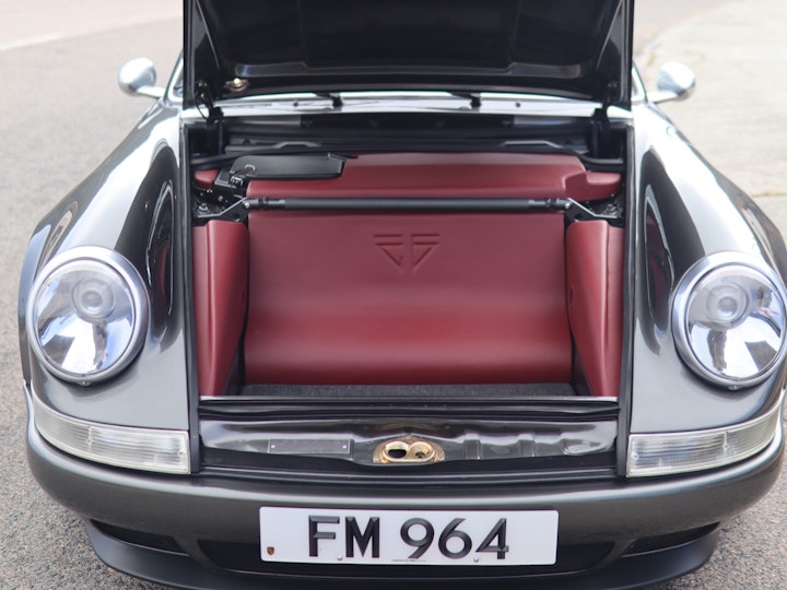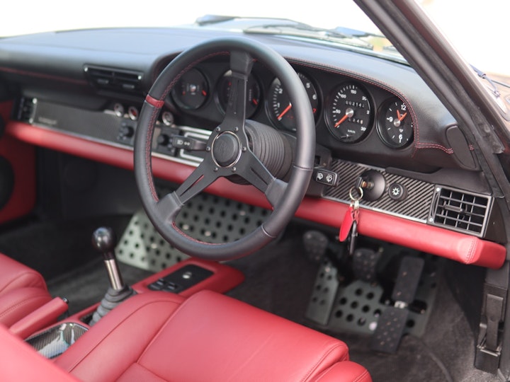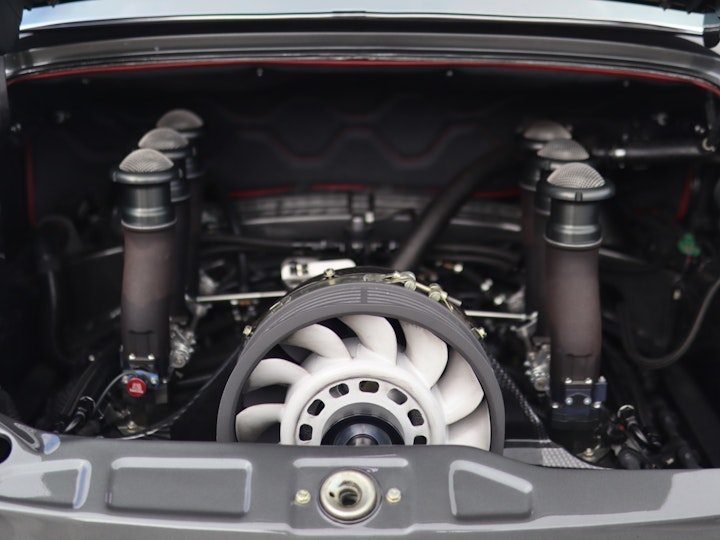The original 964 comes with a 3.6 litre naturally aspirated flat six engine producing around 250HP. Theon Design offers a few different engine upgrades, including a 3.8 litre, a 4.0 litre, and in the near future a supercharged version. The car we have today, designated as ‘HK001’, has the 3.8 litre engine producing about 375HP. To do so, aside from the engine capacity increase, Theon Design had installed individual throttle bodies, larger fuel injectors, bigger valves, and a brand new exhaust system. Like all reputable restomod projects these days, the engine must not only perform well, it also needs to be presented beautifully, as with the case in HK001. The engine is presented with leather surroundings, lots of exposed carbon fibre around the all-important engine fan, and six velocity stack intakes which rounds up the presentation of the engine beautifully.