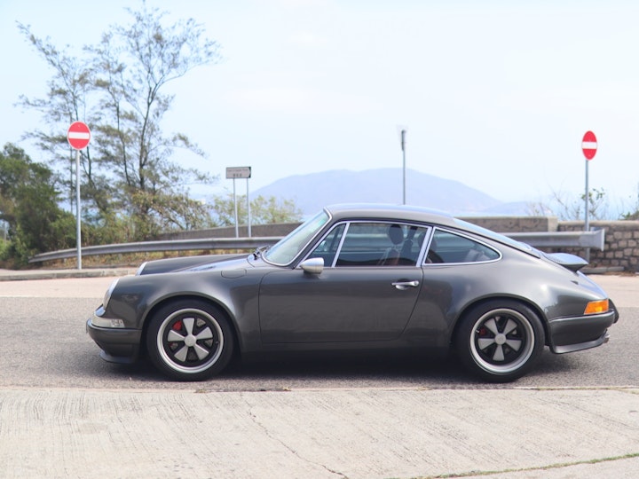 Like Singer, Theon Design only modifies the Porsche 964. The car we have today, the first ever Theon Design in Hong Kong, started off life as a 1989 964 Carrera 4. Unlike Singer, however, Hawley stresses that they do not intend to “redefine” the Porsche 911, but instead to “refine” what is already a very good car. The exterior of the car has been backdated to the early 911 with the extended front bonnet and with the front and rear tracks widened in order to create that must-have widebody look. Wider front 17” and rear 18” Fuch wheels have replaced the originals to give the car better handling and a better stance.