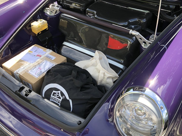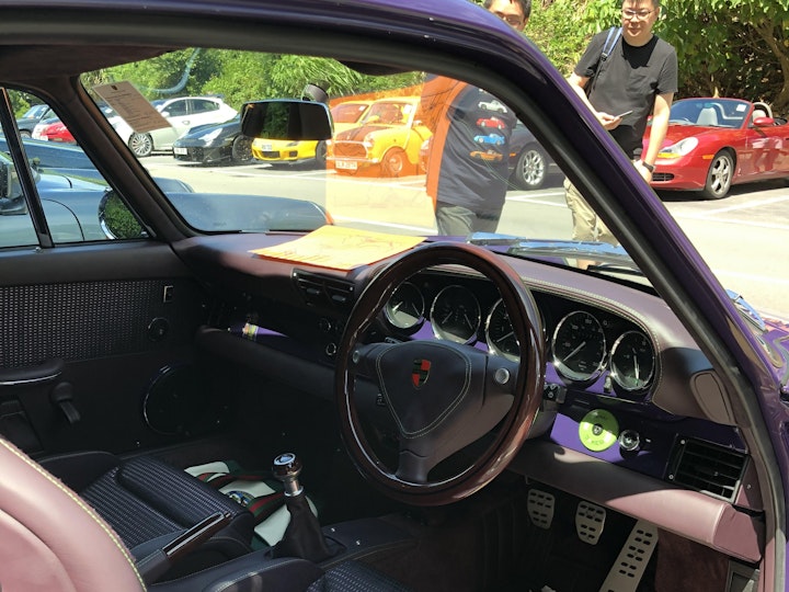 Then came a very special Porsche – possibly one of Hong Kong’s most famous Porsche – the Kaege Retro Porsche – a.k.a. the “Joker”. I first heard of the name Kaege Retro from a Petrolicious episode, where Kaege Retro founder Roger Kaege proudly presented his own retromodded 993 project. In that video, Mr. Kaege made it sound like his car was a homemade retromod out of his shed, as he could not afford a Singer. This was clearly not the case when we saw the Joker in the metal today, or should I say “in the carbon”. The first thing that I immediately noticed was that most of the car’s panels, like the front wings, rear fenders, boot cover and engine cover, etc., all had visible carbon fibre weaves under the paint – just like the Ferrari F40 and F50. Bill, the friendly owner, explained that while the donor car was a 993 Carrera from the 90s, the entire car we have today is completely new, down to every single wire. Clearly not a homemade retromod from a garden shed then.