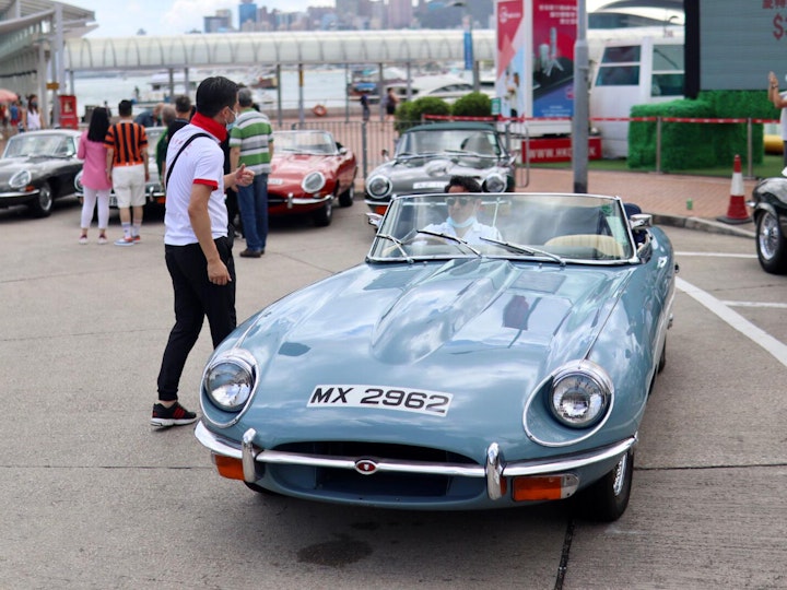 On this special day in Hong Kong, there were eight E-Types representing all the three series. The oldest was a grey series 1 soft top made in 1961, and the latest being a series 3 soft top. In between those two were a number of series 1 and series 2 soft tops and fixed heads. While it was impossible to have all the different variants of the E-Type present, since there were a lot of different variations throughout its decade-plus production period (e.g. from the earliest “flat floors” to 2+2 fixed heads), it has to be said that the collection of E-Types present was impressively complete.